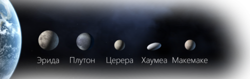 "Средний класс" Солнечной системы. Понятие «карликовой планеты» (dwarf planet) появилось в лексиконе астрономов 16 августа 2006 г., когда на Конгрессе Международного астрономического союза (IAU) в Праге было принято новое определение понятия «планета», базирующееся на массе, размерах и орбитальном окружении. Согласно ему, Плутон «вычеркнули» из числа планет.